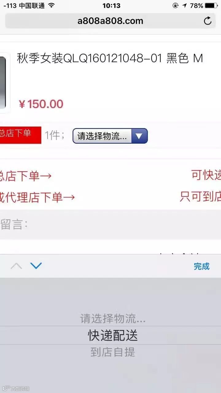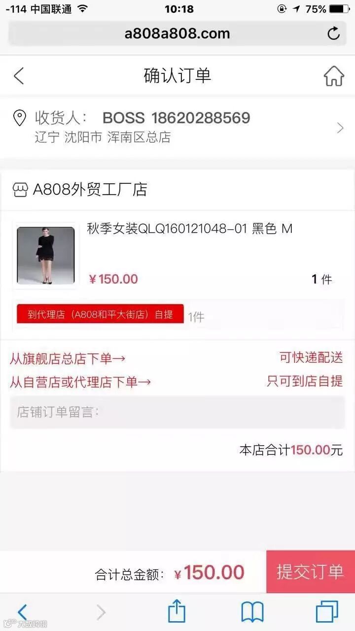 点击链接直接进入商城,选到你喜欢的那一件之后,就要开始选择发货还是到店试穿购买了,截至目前,旗舰店(也就是亿丰店)仍然是库存最多、款式最全的店,并且也是10家店铺唯一一个可以发货的店铺,但毕竟A808是一家专营外贸尾单的店,商品品种多数量少,难免有些商品散落在全城的十个店中某一家,如何精准的看到商品在哪里、怎么买也有很大的学问哦,如果亲们一旦选择的商品不在亿丰店,需要给我们足够的时间从各店调货集中发货噢!