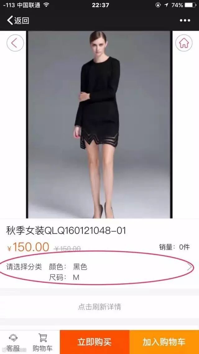 1,进入商品页面之后,大家要先点击“选择分类”选中你需要的颜色尺码(图一);