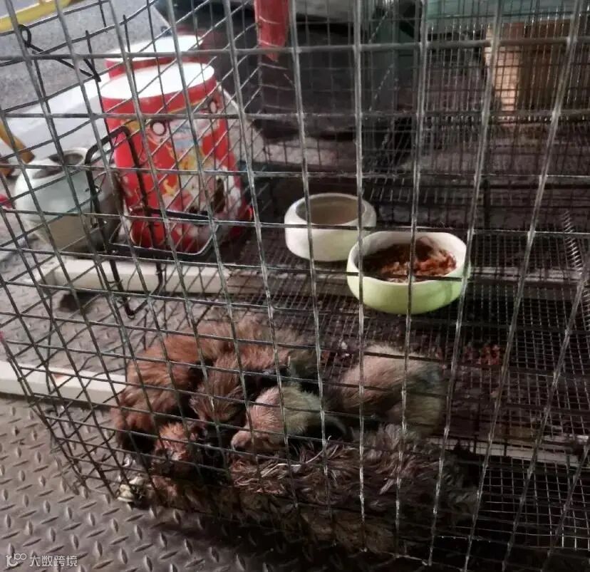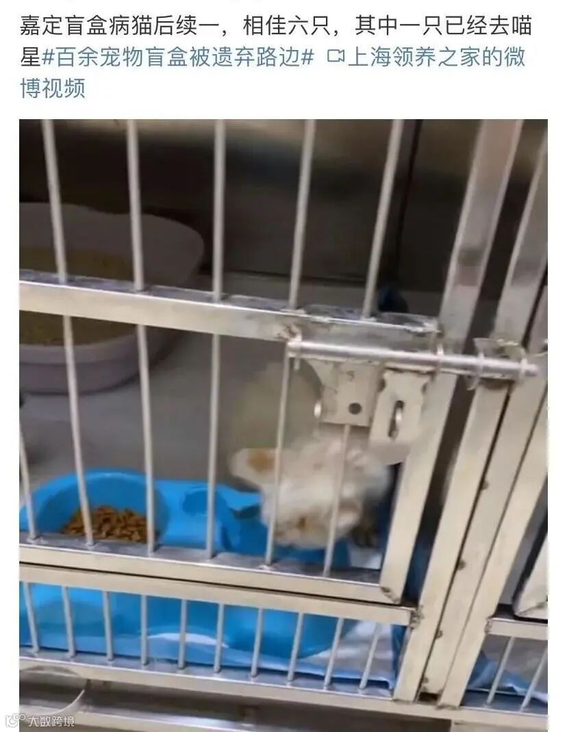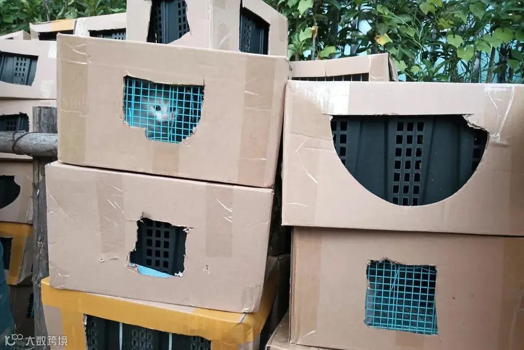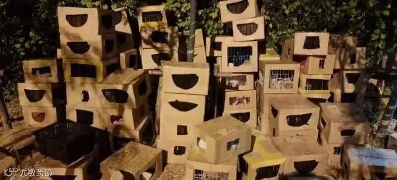 20日下午,上海嘉定区某小区门口发现大量活体宠物盲盒,上百只奶猫奶狗被装在纸箱覆盖的笼子里,瑟瑟发抖、哀嚎不止。