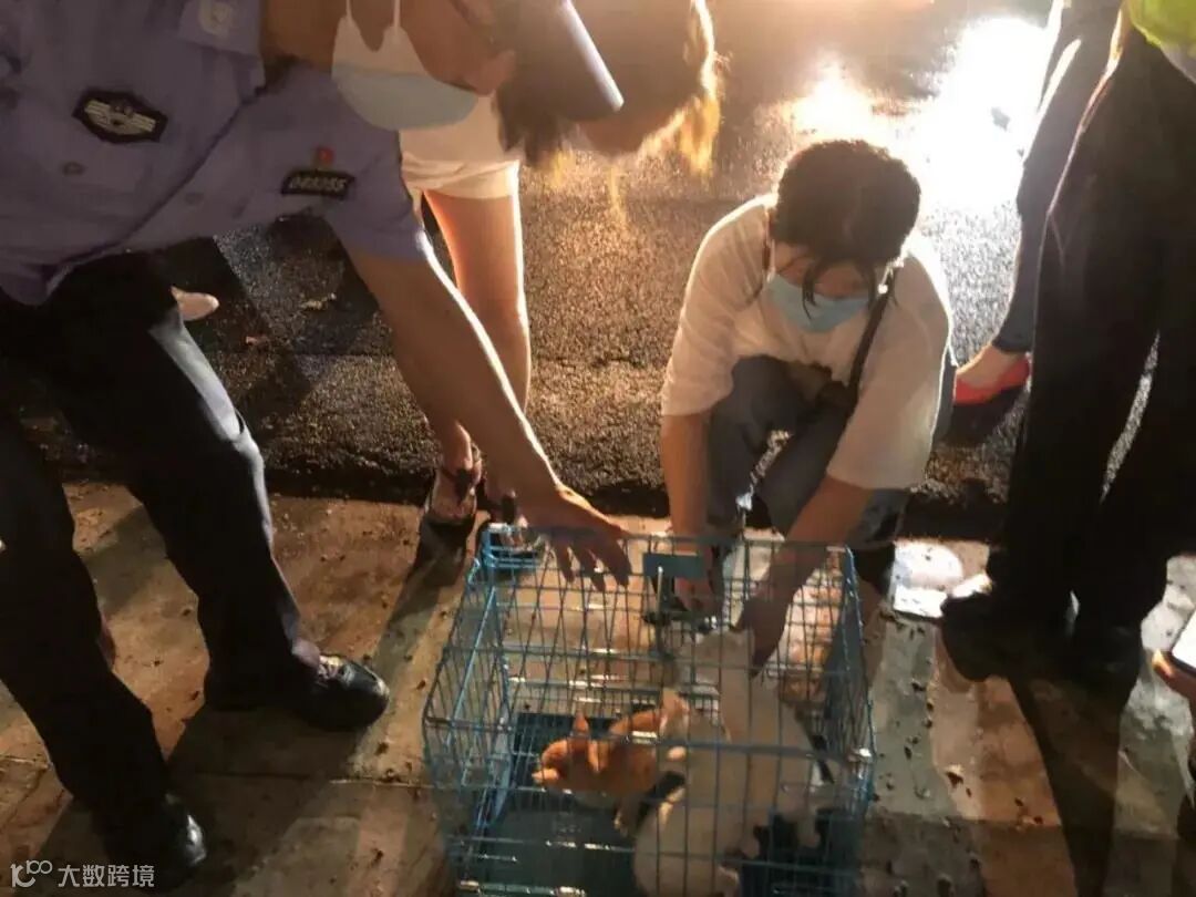 在警方与志愿者的不懈努力下,凌晨1时30分,71只奶猫、36只奶狗全部被领养。