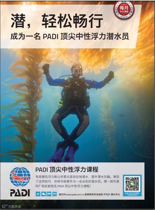 其实做到中性浮力并不难,PADI就专门设有顶尖中性浮力课程,无论是对自己潜水技术的考核,还是为安全考虑,这都是一门十分实用的课程