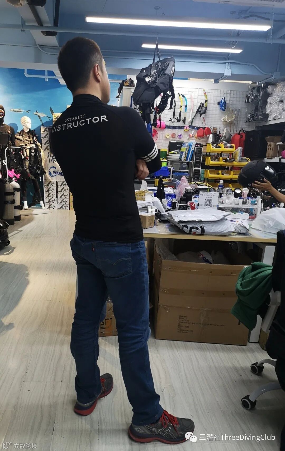 除了按性别和尺码区别,三潜社水母服更有潜水员版、教练版和总监版,背后分别是5Star IDC,Instructor,Course Director。