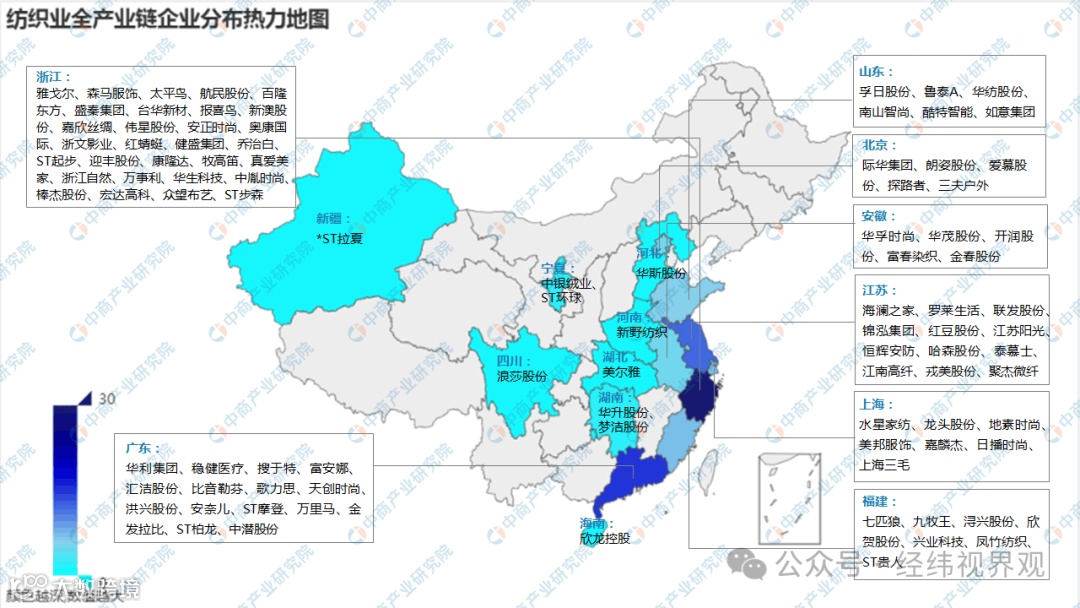纺织业全产业链企业分布热力地图(图源:经纬视界观)