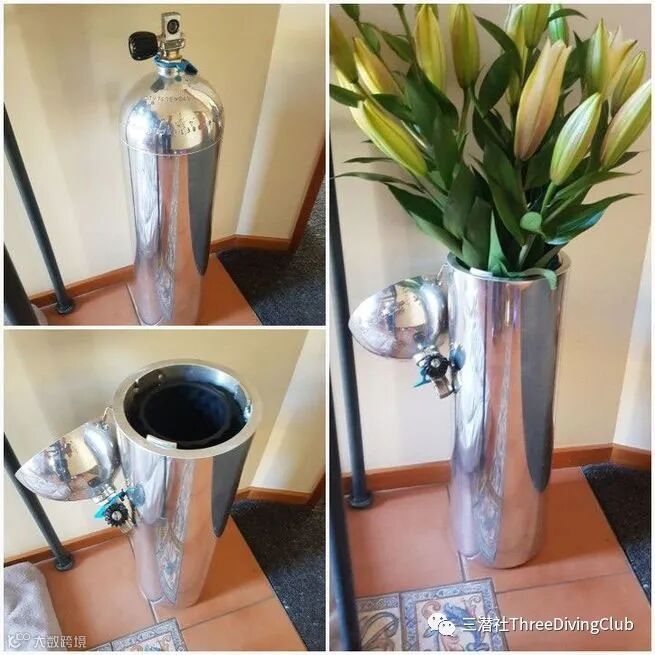光荣退役的气瓶返聘原岗位:容器,只是气换成了水和植物,因为摆在家里居多,记得一定打磨漂亮,尽量落地摆放。