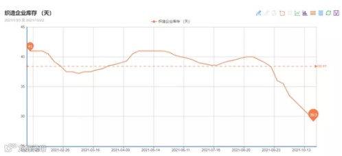 由于产能的下降,叠加“银十”订单的到来,织造库存在短期内得到了一次大释放。主营春亚纺的凌经理跟我们说:“我们主要做订单,但是市场货也有在做,像我们春亚纺做的很多,这几天我们这春亚纺都已经库存不多,市场上也确实应该紧张了。”主营功能性面料的陈经理和我们说道:“我们这库存不太多了,现在走货很通畅。”主营春亚纺的翁总表示:“我们做现货的,库存要有一定的存量,基本在一个月吧,比前期走货确实是好转了,库存下降了很多。”