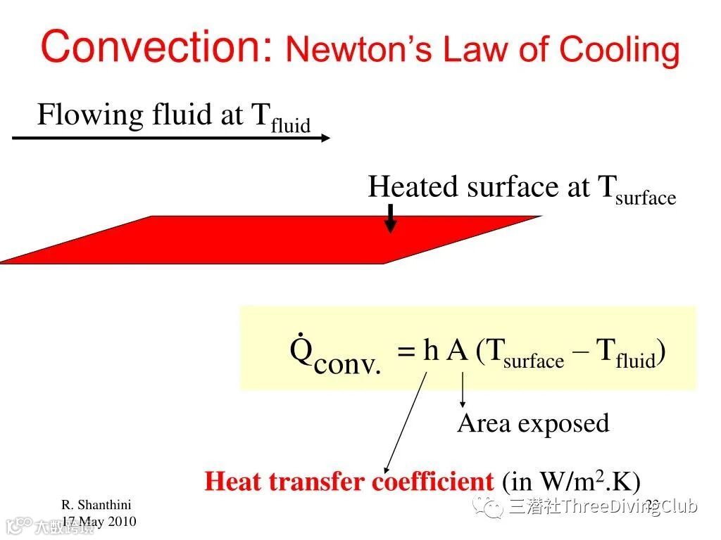 可以看出水比空气传热快20-33倍,所以基于人的表面积基本是固定的,我们在海里潜水的事实也不会轻易改变的现象来看,公式里的传热面积、对流传热系数基本没法变,那么剩下的只有Δt温差。