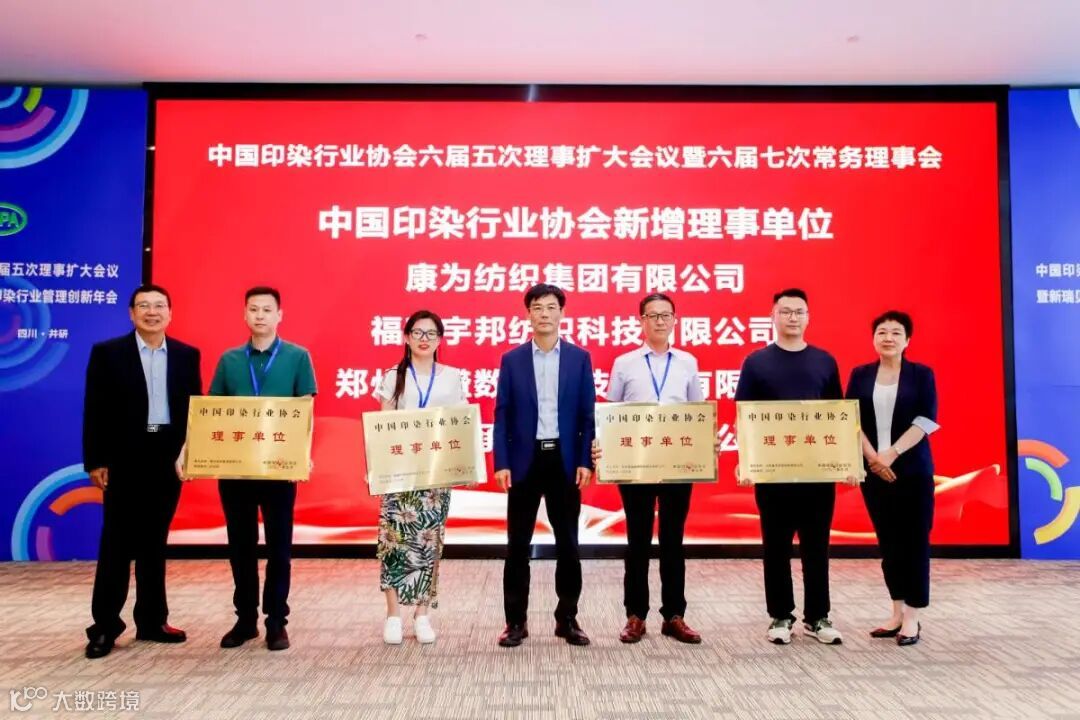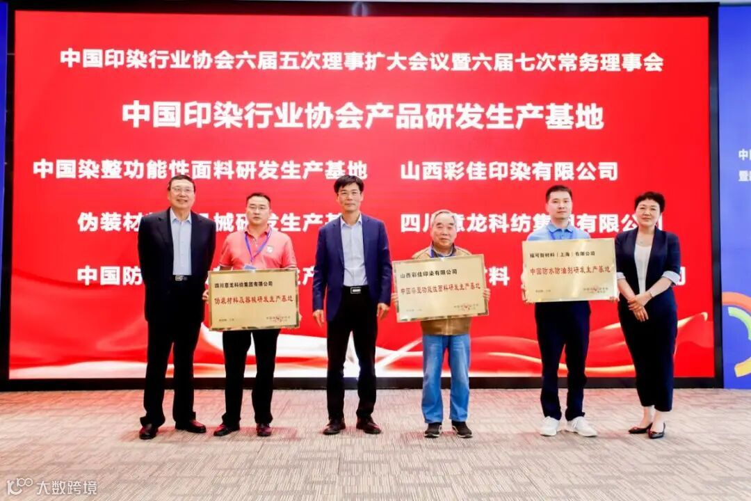 此外,大会还宣读了关于批准山西彩佳印染有限公司和四川意龙科纺集团有限公司继续作为中国印染行业协会基地的决定;关于批准福可新材料(上海)有限公司为中国印染行业协会产品研发生产基地的决定并颁发铜牌。