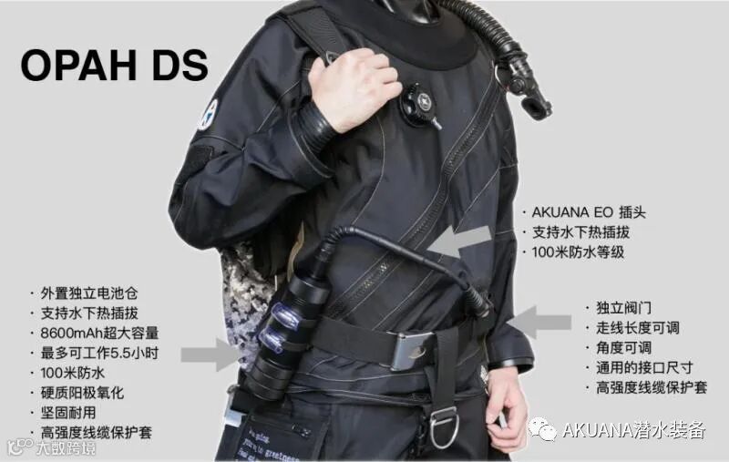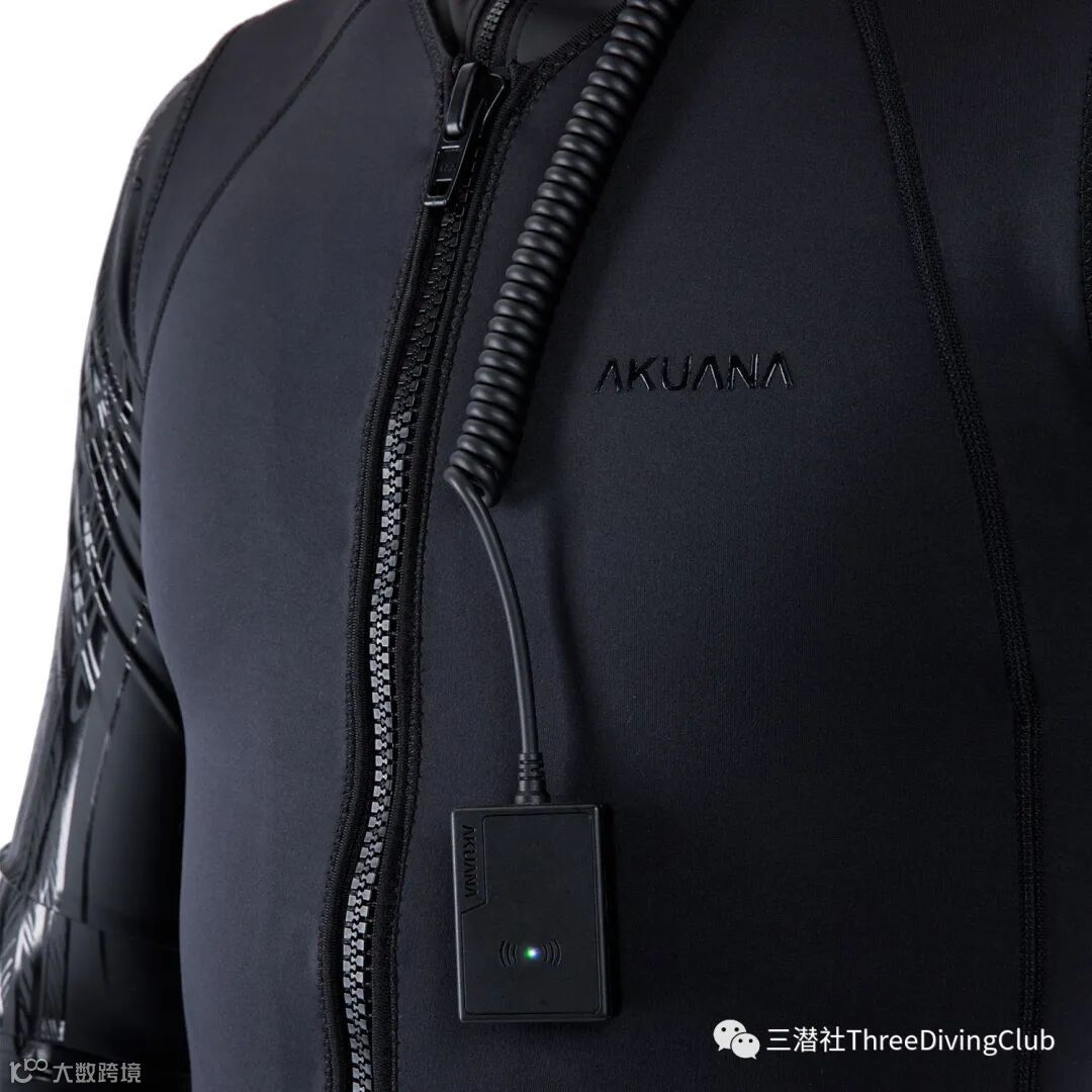 干衣版本的电池放置在干衣外面,可以固定在腰带等位置,通过集成电缆过线孔的充气阀或通过单独开的过线阀与干衣内的电热底衣进行连接。电缆带有快插接头,当出现电池故障时,可以迅速拔除接头切断电源以防止烧伤。湿衣版本电池由于是浸泡在水中,隔绝了氧气,出现异常时不会造成剧烈燃烧和爆炸。而将湿衣版本的电热底衣穿在干衣内部,电池一旦出现故障过热后会导致烧伤,潜水员也没法第一时间解除危险,这对潜水员安全构成很大的威胁。