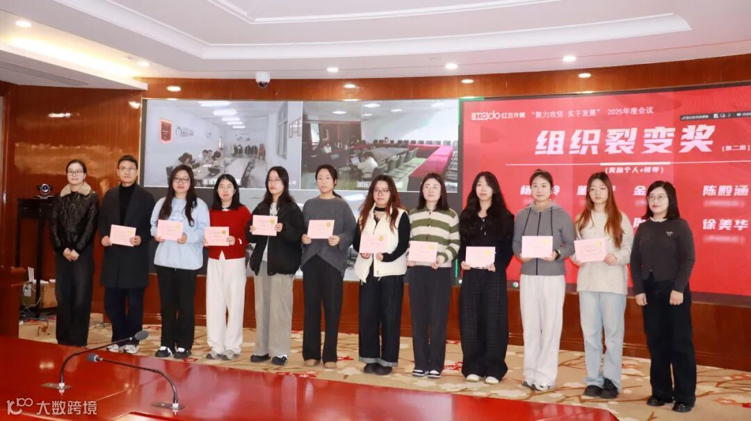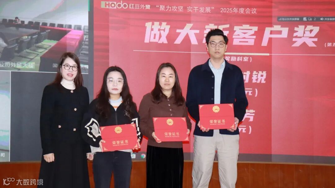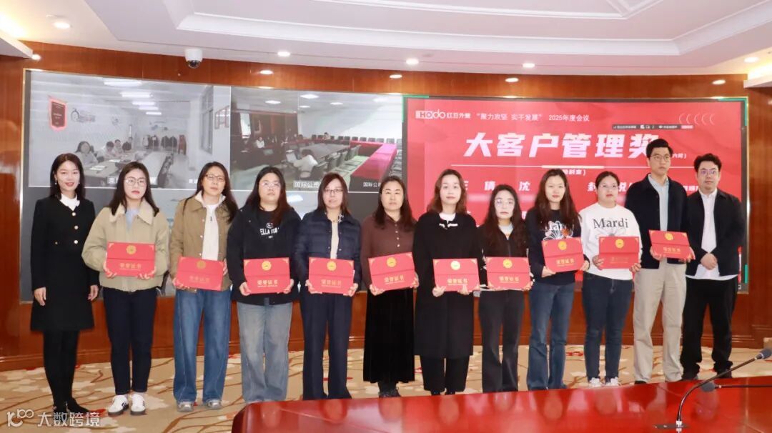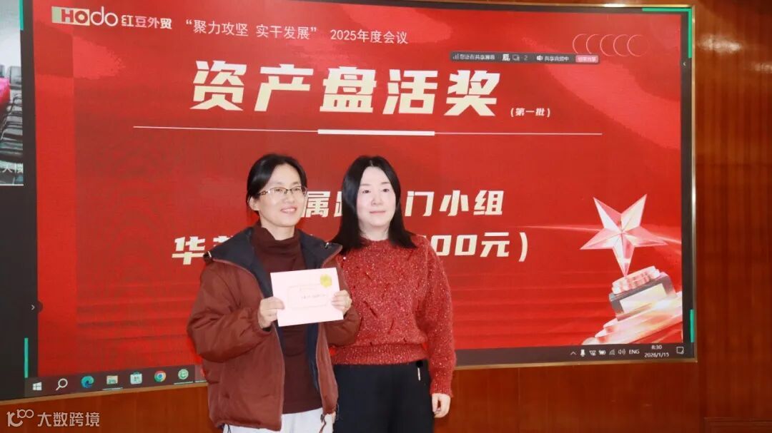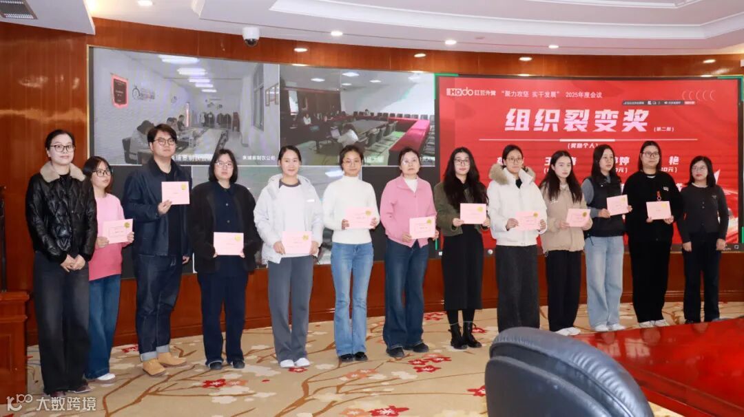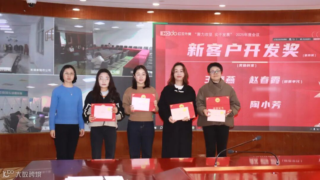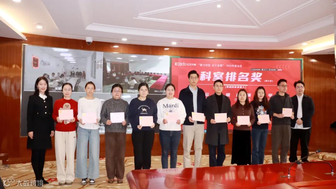 成绩印证拼搏,先进擎起标杆。会上,财务部部长赵敏对2025年度1-12月业绩情况进行通报,外经企管部部长颜军宣读了2025年度表彰决定。公司领导分别为“资产盘活奖”“组织裂变奖”“跨境电商鼓励奖”“新客户开发奖”“做大新客户奖”“大客户管理奖”“科室排名奖”七大奖项进行颁奖。