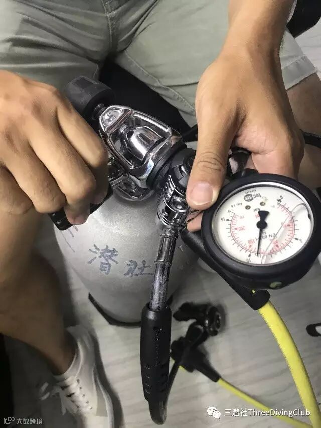 当你断开一级头与气瓶的连接之后,清洗二级部分就不要再按排水按钮了,因为水会进入到二级头部分,甚至有可能顺低压管流到一级部分,造成部件损坏。