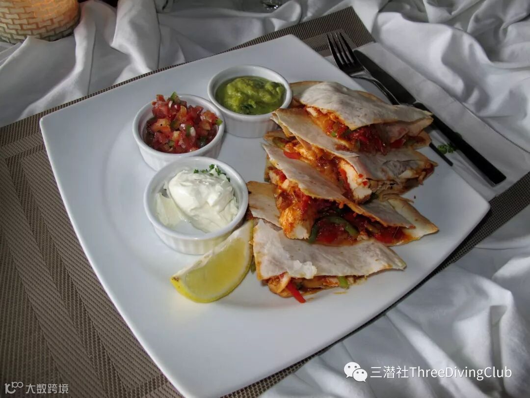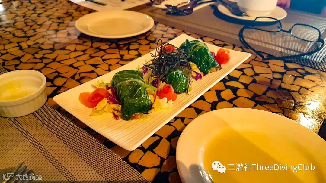 无论是否愿意,在潜店解决正餐还是比较多的选择,为了留住客人,度假村对口味还是重视的。看到这些精致的餐食肯定对第二天的潜水抱有信心。