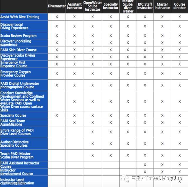 比较一下,继续接受专业潜水员教育后,你能教授什么课程
