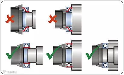 轴承安装装反了,不仅轴承工作不正常,且各配合面会遭到严重磨损。由于轴圈与座圈和区别不很明显,装配中应格外小心,不能装反。