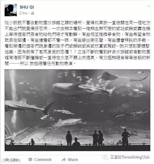 想想一下你,如果被困在混凝土中,忍受观众的喧闹,忍受各种机器的噪音,海豚是听觉动物呀,这些对它们来说是极残忍的虐待!