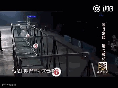 在自己国家一口气撞破15块钢化玻璃,这次挑战吉尼斯记录他选择在中国,并扬言要一口气撞破17块玻璃