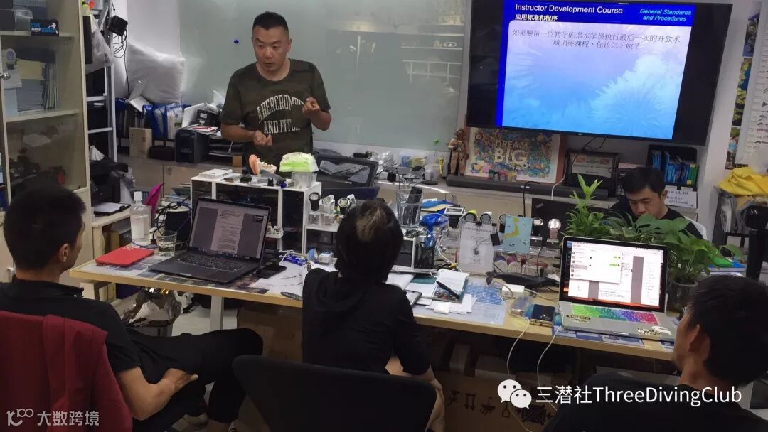 教练班的第一堂课,总监身着配有总监胸牌的衬衫,是告诉大家必须要严肃对待IDC课程,候选人在IDC课程期间应该实时记得要树立教练的素养。即:扎实的潜水功底,示范级的技巧演示,能简单易懂的教学讲解能力,能迅速判断问题所在,能成为良好潜水的表率榜样等等,最重要的一点:职业素养。