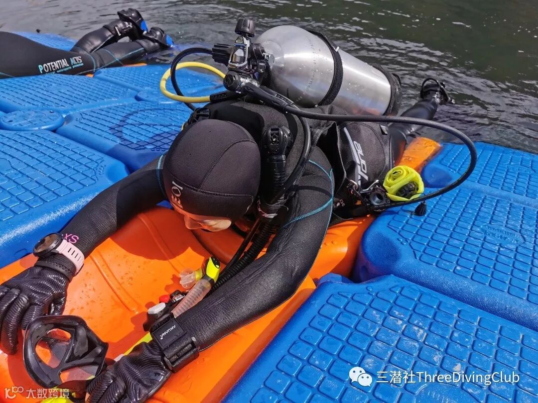 9月的盱眙矿坑水温26度左右,5mm湿衣加上头套,女候选人还穿了电加热底衣,感觉暖暖的。