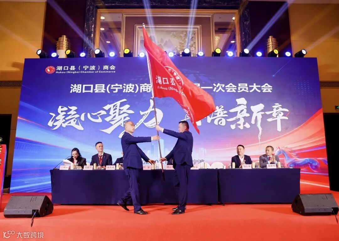 随后举行的授旗、授牌仪式将大会推向高潮。象征着责任与使命的商会会旗交接,以及为新任会长、监事长、常务副会长、副会长等授牌,不仅是职务的赋予,更是乡情纽带与奉献精神的传承。这一刻,庄重而温暖,寓意着湖口县(宁波)商会将在新的起点上,凝聚更强大的力量,开启全新的征程。