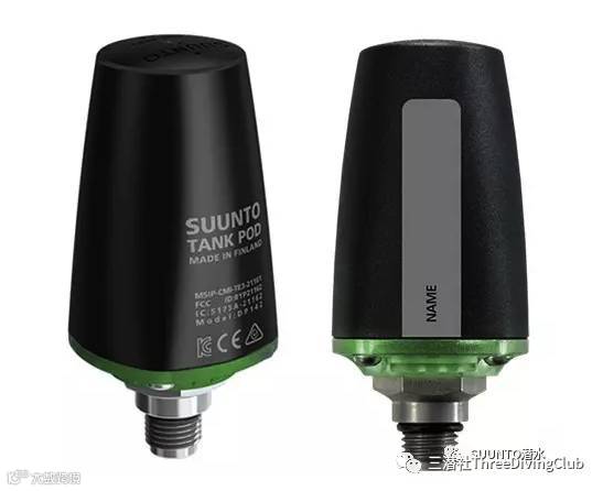 仅与Eon Steel 配对使用,黑色锥形外壳,壳身印有灰色的“SUUNTO TANK POD”、“MADE IN FINLAND”字样,透明底座。