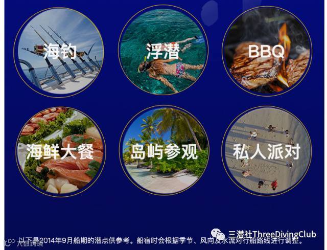 2. 关于租用装备:船上可租,价格另附。我们俱乐部也提供装备租用,建议大家国内租好,以免上船后出现问题。另外船上使用高氧价格:15美金/人/天。
