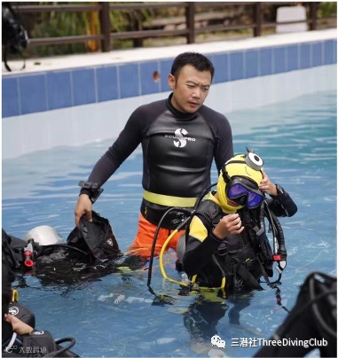 潜水,2018年在一次偶然遇见了三潜社,遇见了Sardon总监,参加暑期小勇士班,圆了我的梦想让我成为一名青少年开放水域潜水员(Open Water)。在通过书面知识考核之后我们一起下了泳池,三教练不厌其烦地教我们做规范练习,课后我们发现三教练晒出了面镜脸,原来他总是让自己面对炎热的阳光让学员背对着太阳。