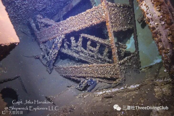 货船在沉没时断成了两半,两块残骸由残缺的钢栓在一起。床和桌子都固定在地板上。所以当浏览沉船时,它们看起来就像上下颠倒。”Dillaman说。