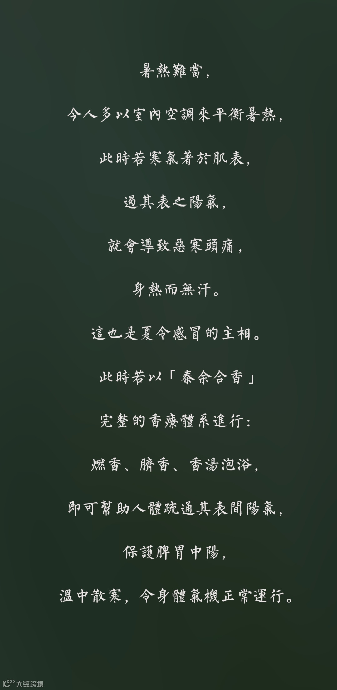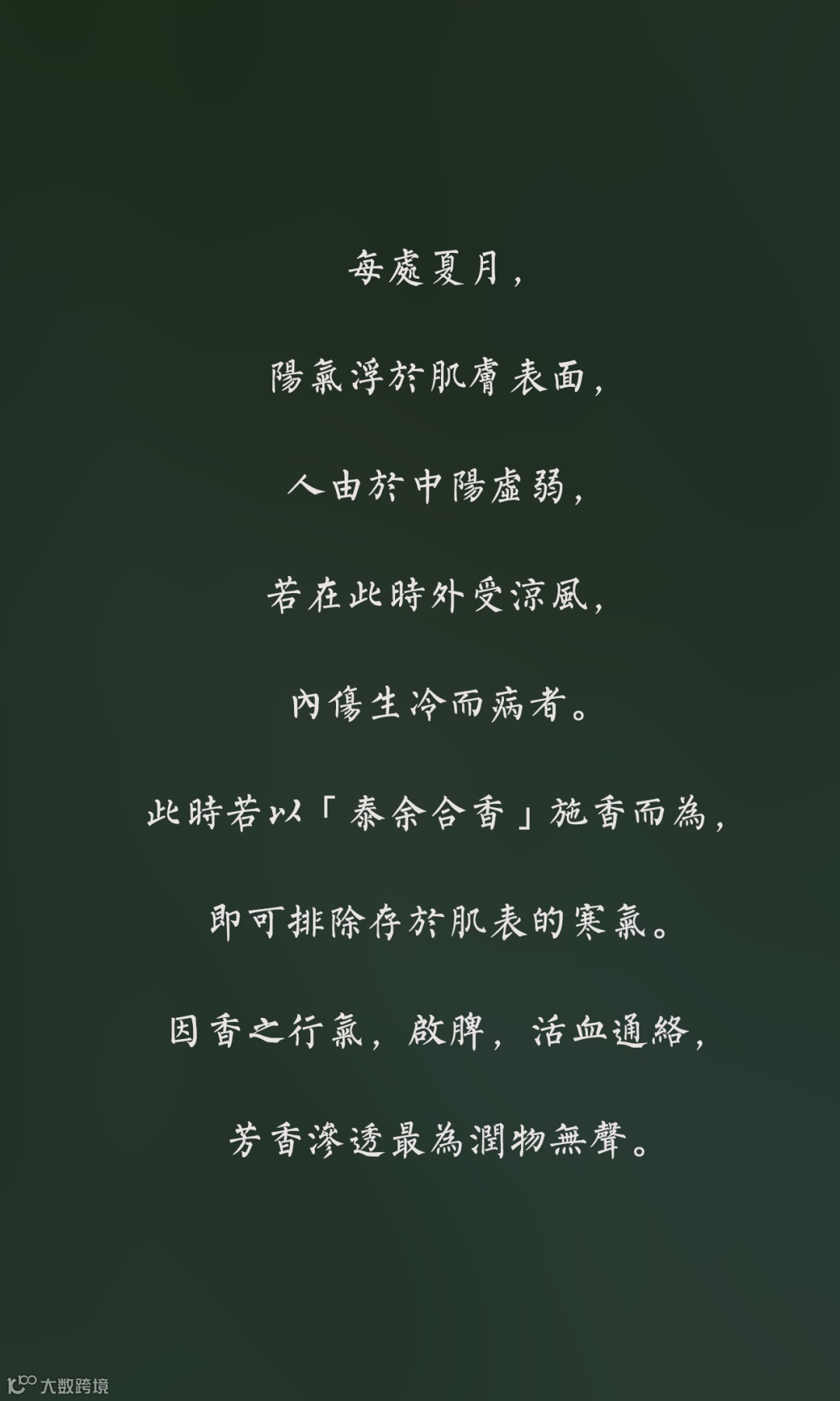 导读:請諮詢您身邊的用香顧問開啟一對一的香療進行時。 泰余|錚萱:18813228560 泰余|于国辉:180