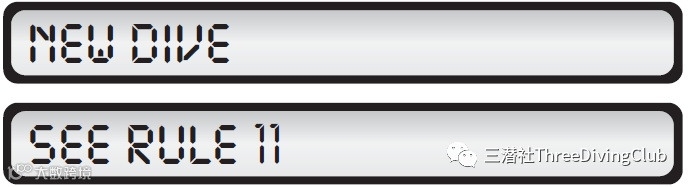 当eRDPml显示“NEW DIVE”和“SEE RULE 11”时,表示你的氮气含量很低,你可以将下一次潜水视作第一次潜水。此规则和WXYZ规则(规则6)相遇时仍然要遵守WXYZ的最短水面停留时间。