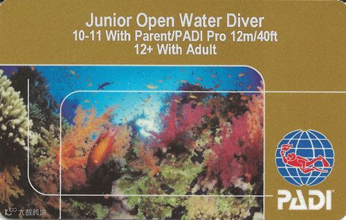 在通过检定之后, 10 – 11 岁的青少年潜水员必须在一位家长、监护人或 PADI 专业人士的陪同下才能潜水,最大深度限制是 12 米;12 – 14 岁则必须在一位合格成人潜水员的陪同下才能潜水,最大深度限制是18米。