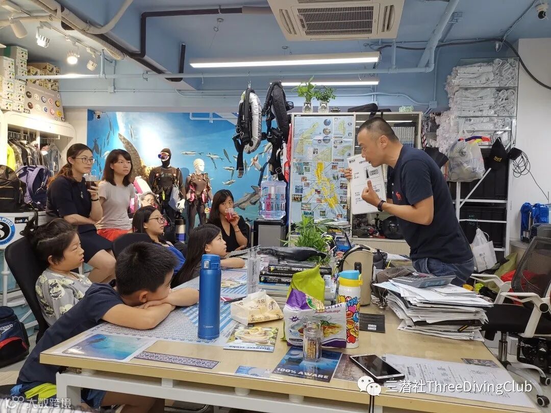 为了让孩子们更有准备地进行泳池体验,三潜社额外增加了下泳池前的理论课程课时,课程不但包含技巧的室内示范,也不断强调水底生物的保育和海洋环境的保护,同时会使用更为浅显易懂的语言来帮助孩子掌握技巧。