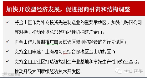 支持先进制造业、高端生产性服务业、外资总部级电子商务领域等国内外重大项目和龙头企业落户金山;