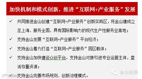 金山积极创建“互联网+产业服务”创新实践区,围绕“金山智造”大力发展服务经济;