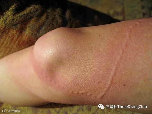 “任何粘在皮肤上的触须都应该去掉,可以用镊子,也可以用手(戴上手套)。然后用海水清洗刺痛的部位。”
