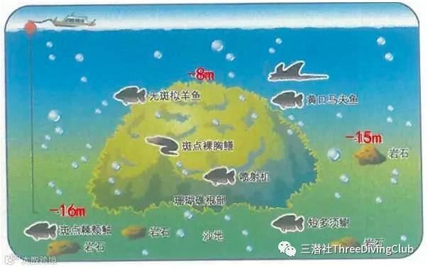 潮流:简单的来说,越大的流, 鹰魟就越会出现。 比平时多带2磅的配重, 运用船的锚绳下潜。 此点有季节性,季节为10月到4月。