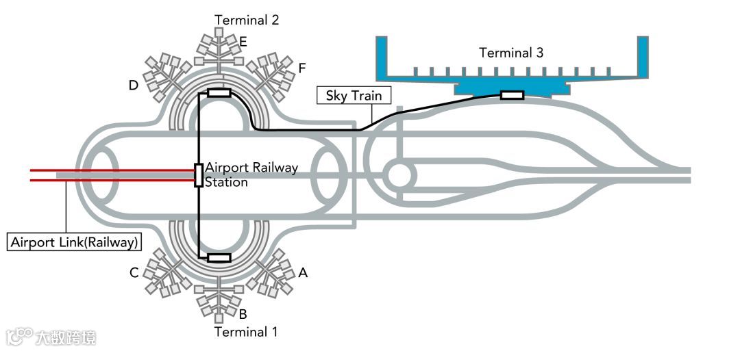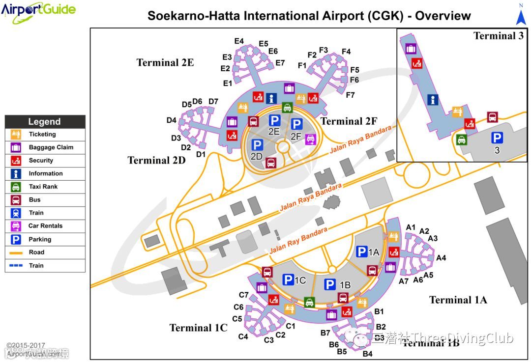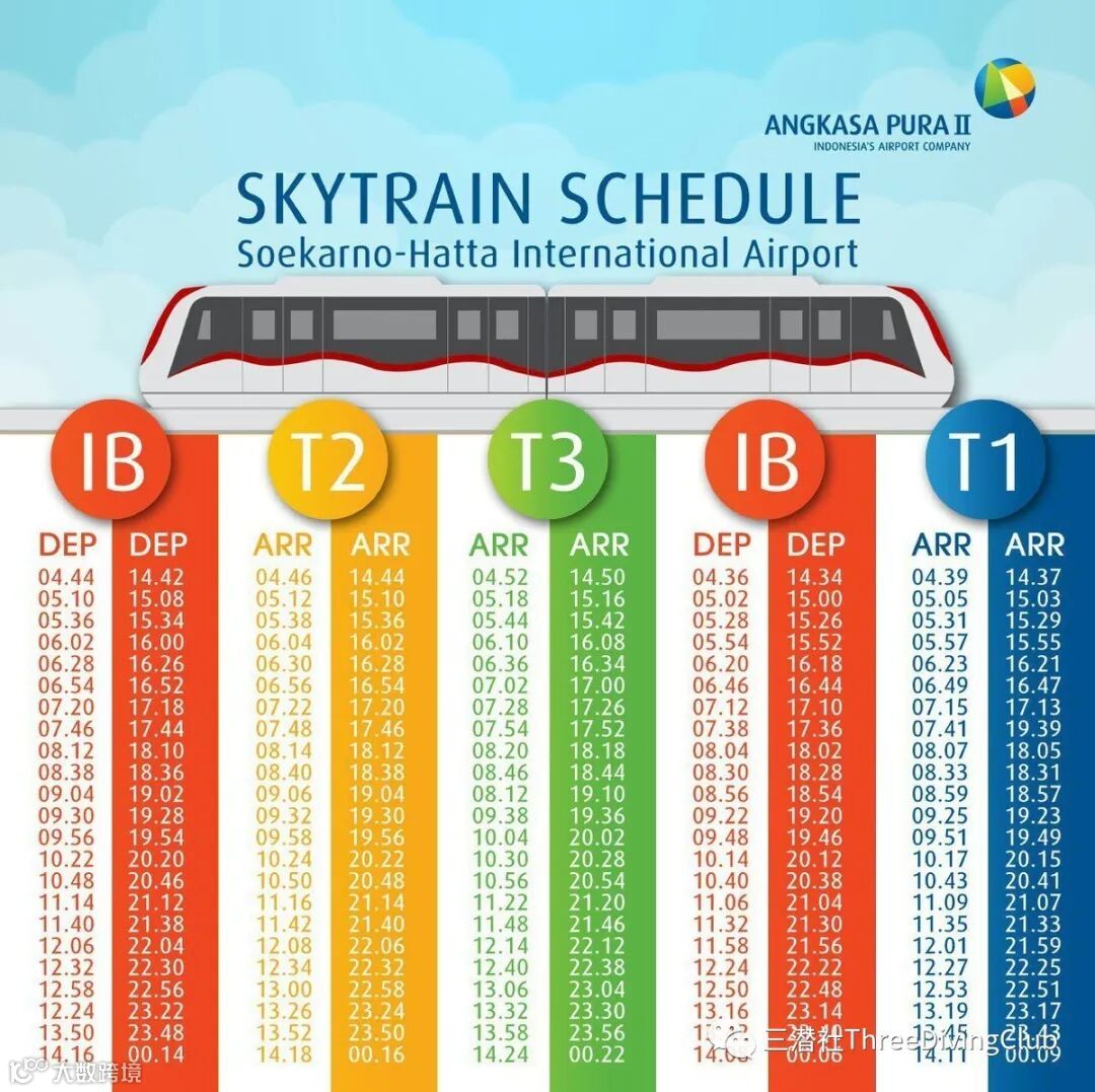 雅加达至索隆航班中大多在T1或T2,鹰航在T3起降,对于T3和T1/T2间的短驳需要借助Skytrain。
