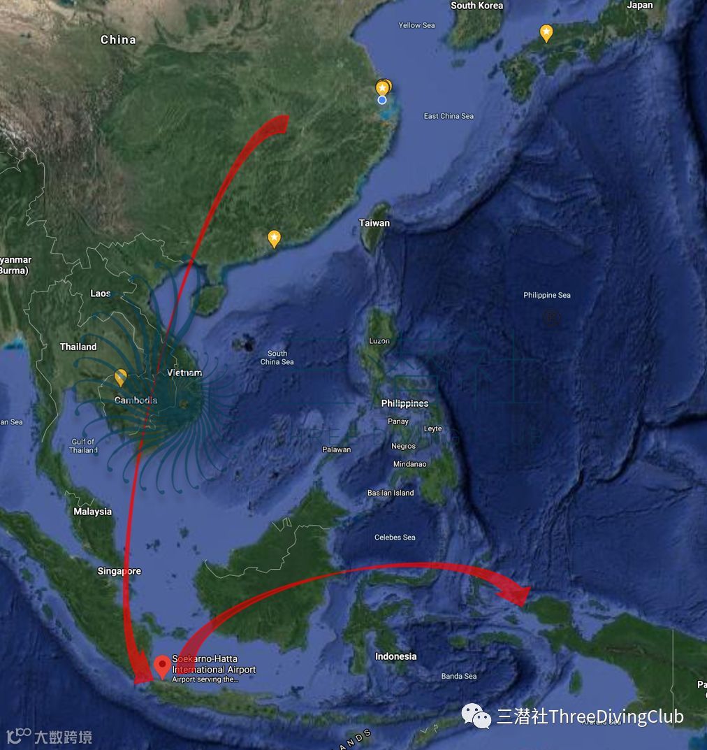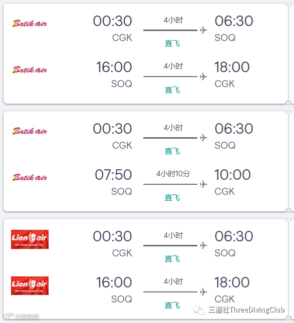 去四王,中国没有直飞,也没有直挂。一般在印尼雅加达(CGK)入境后中转至索隆Sorong机场(SOQ)。