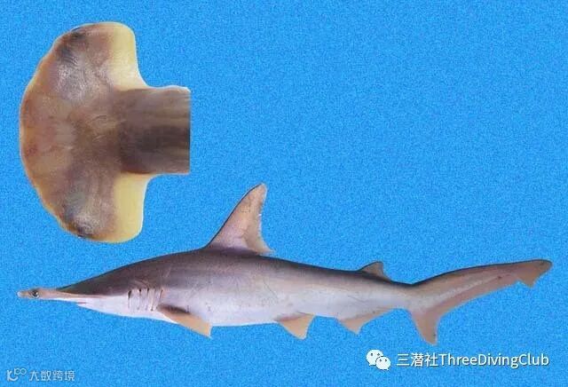 长吻双髻鲨(Sphyrna corona):这个品种很稀有,只在墨西哥和秘鲁出没,最长100cm,头翼属窄形,宽23cm,又叫皇冠锤头,濒危等级近危。