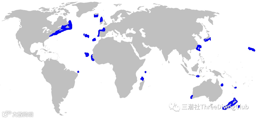 另外一属拟皱唇鲨属中唯一物种拟皱唇鲨(Pseudotriakis microdon)相信大家在某些GIF中见过,就是那条很丑的鱼,特征不需要文字描述了,这一物种栖息于大陆棚或岛屿棚斜坡,属于底栖性鱼类,生性懒散,行动缓慢。可能因为这些特征,在日本、台湾、印度尼西亚、珊瑚海、新西兰和夏威夷群岛都有登记,且是无危状态。
