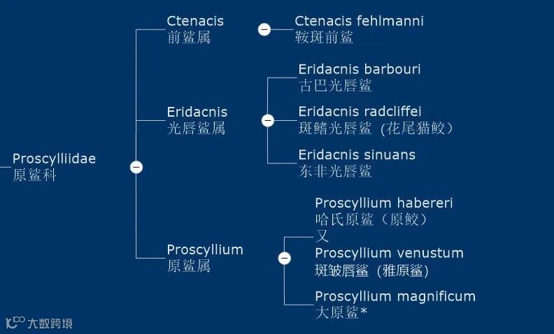 原鲨科(Proscylliidae),包括前鲨属(Ctenacis)、光唇鲨属(Eridacnis)、原鲨属(Proscyllium)共三个属六个种。