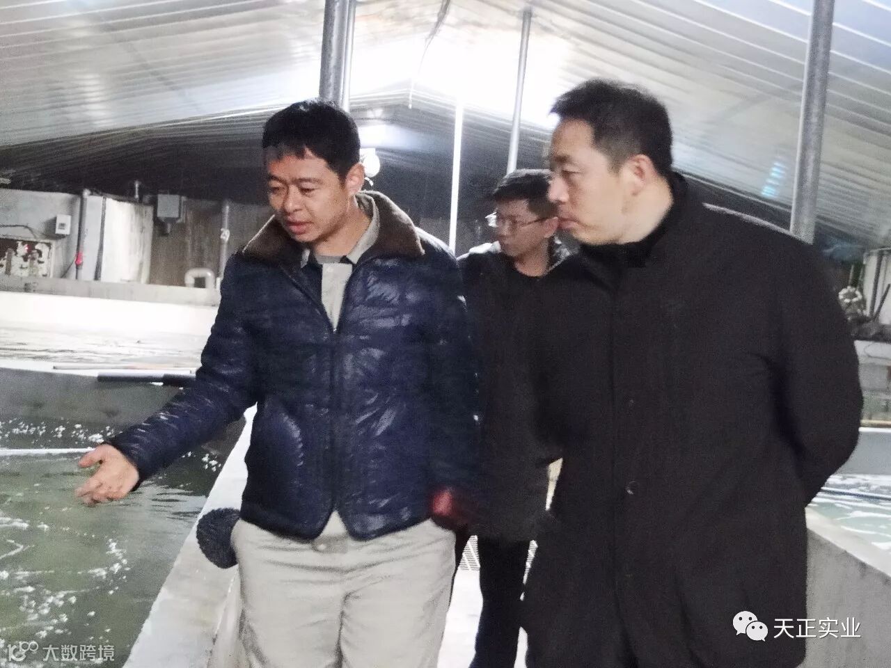 天正集团技术研发中心经理刘圣聪与大黑石养殖场场长张涛陪同郑怀海一行参观了循环水养殖车间与河豚鱼加工车间,并向刘处长等领导详细介绍了基地红鳍东方鲀养殖、加工的实际生产情况。