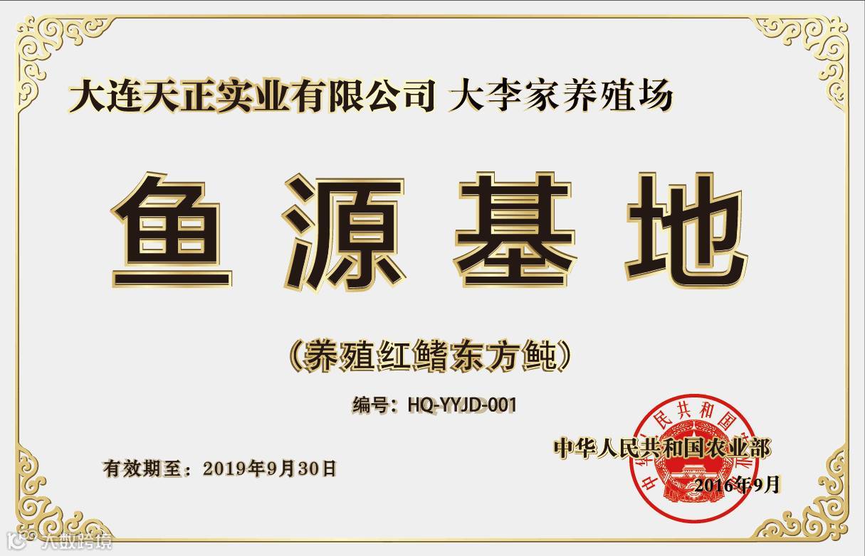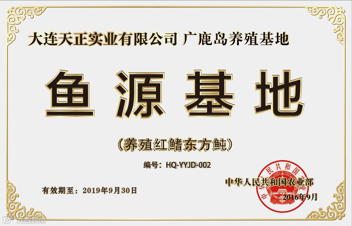 河鲀& NO.001 作为国内河豚鱼产业领军企业,天正集团集河鲀育苗、养殖、加工、餐饮、销售全产业链于一体,自成立伊始,始终致力于推动河豚鱼产业健康发展和技术进步,二十余年来有力推动了中、日、韩等国之间的河豚文化交流与贸易往来,以及国内河豚鱼市场的开放进程。农业部、食药局两部委《关于有条件放开养殖红鳍东方鲀和养殖暗纹东方鲀加工经营的通知》(农办渔【2016】53号)下发后,天正集团积极运筹,率先完成了养殖红鳍东方鲀鱼源基地的备案工作。通过此次渔协审核、专家评定,天正大李家养殖场、天正广鹿岛养殖基地顺利通过评审,荣颁“农业部养殖河鲀鱼源基地”(编号分别为:001、002),广大鲀粉今后吃天正河鲀将再无后顾之忧了!!!~