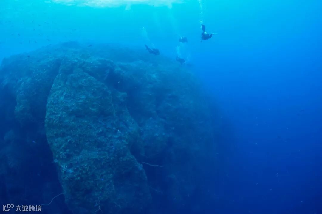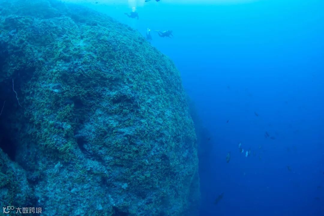 Peleliu Express(以下简称通道)连接着另外两个潜点,Yellow Wall属于大陆棚的峭壁,经过通道后就到了Peleliu Corner(以下简称角),潜点的划分以一块在15米处的巨大岩石作为参考。