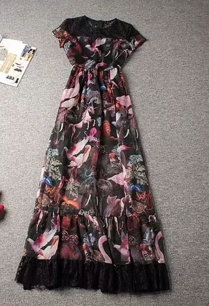 连衣裙,165元。印花大摆连衣长裙,丝绸面料,轻薄飘逸,柔软透气。