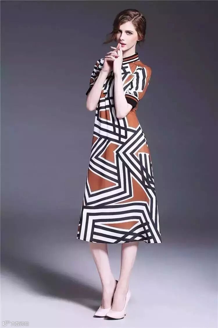 连衣裙,150元。经典几何图案连衣裙,小翻领设计,欧美大牌范儿。