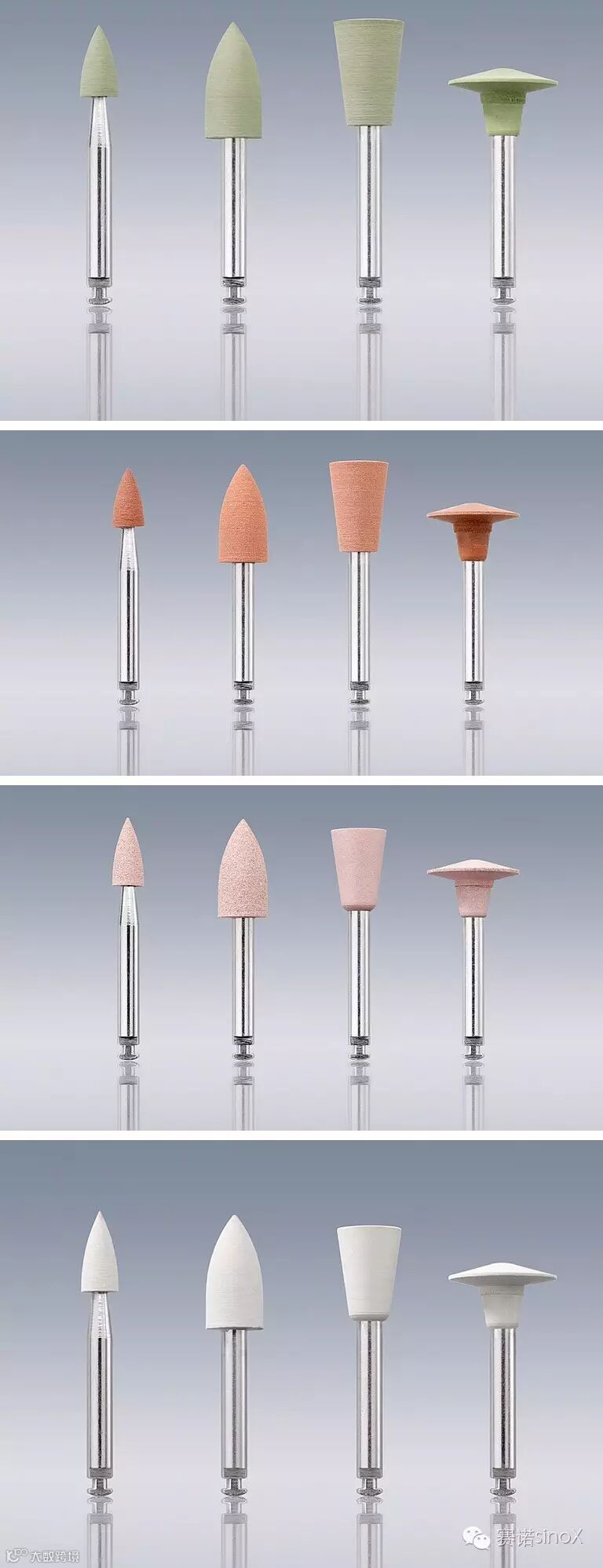 用于在口内天然牙釉质或烤瓷修复体的调合,形态修整以及修整后表面的高度抛光。