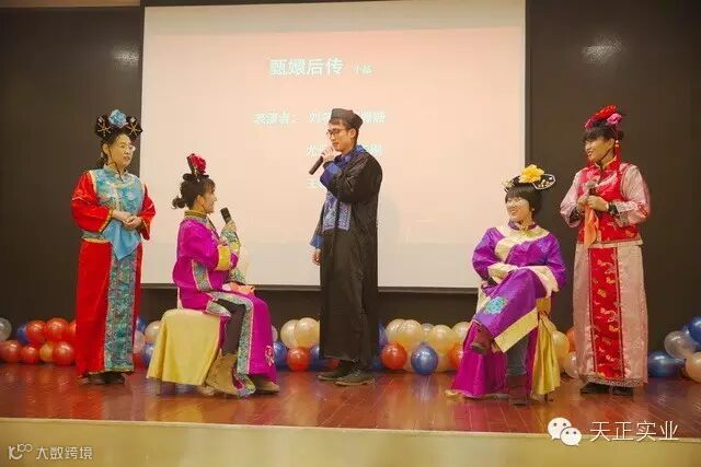 大会进入到晚宴阶段,由天正员工自导自演的晚会高潮迭起,为忙碌一年的每一位天正员工送来了欢笑与放松。永不休止奋斗的天正人,除了金戈铁马、驰骋商场与养殖场,在自娱自乐方面,也各个身怀绝技,唱歌、跳舞、小品,样样精通,歌声、笑声,此起彼伏。天正版的《甄嬛后传》有模有样,不输宋小宝,料理店的厨师照样能演出赵四的神韵,天正河魨版的《猜歌名》爆笑桥段比原班人马更接地气儿,让大伙嗨翻的同时几乎忘记了满桌的美味佳肴。