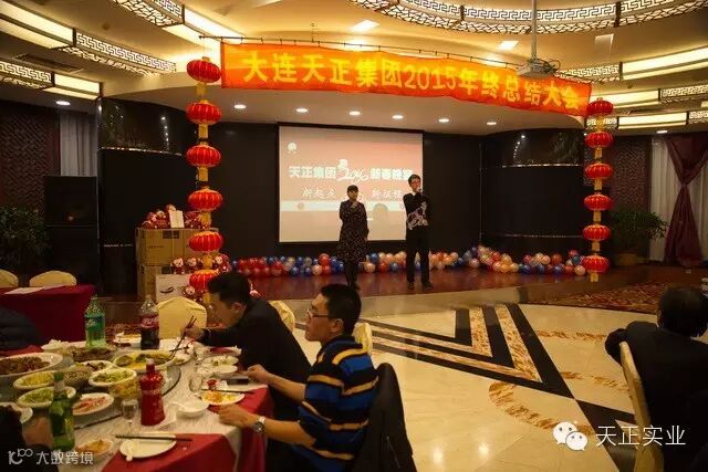 2016年 1月30日,天正集团2015年终总结及表彰大会暨2016新春晚宴在大连船舶丽湾大酒店胜利举行。大会共分为三个部分:一、天正集团2015年终总结大会;二、天正集团2015年优秀员工颁奖典礼;三、天正集团2016新春晚宴。