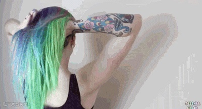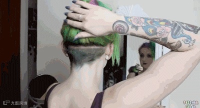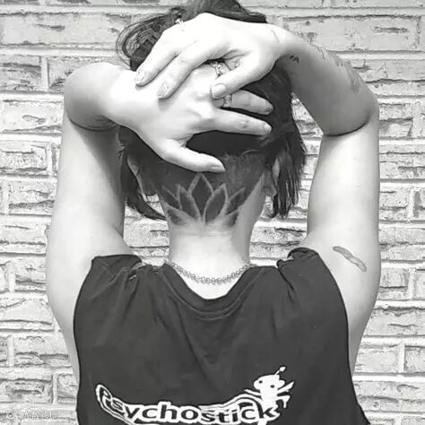 这个妹纸后颈的纹身和Undercut刚好融为一体,酷到不行。