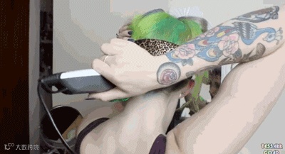 Step.4:一切准备就绪后就要开工了,不要慌张,嗡地一声,一小撮头发就下来了。