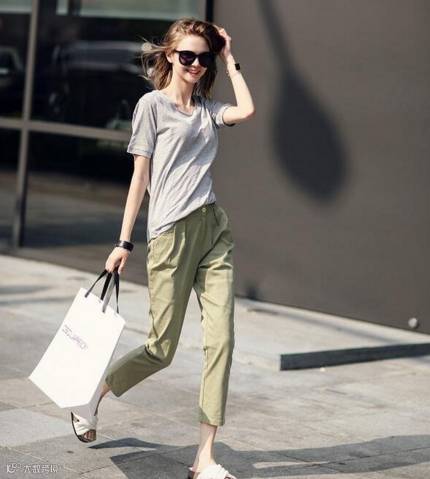 8、搭配Tips:纯色T恤+9分休闲裤+凉拖